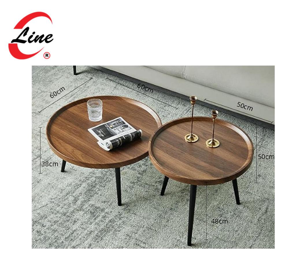 طقم طاولات مدور وسط خشبي مع